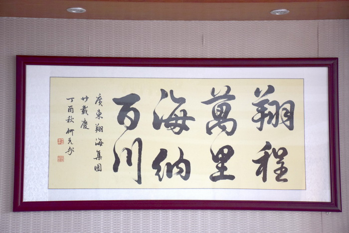 “翔程万里,海纳百川”,佛山市著名书法家亲自提笔,祝贺广东西甲在线买球(中国)有限公司官网集团20周年庆典。